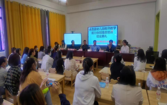 结业典礼上,丽江师专学前教育学院党总支书记吕志刚指出,学前教育是终身学习的开端,对人的身心健康、习惯养成、品德培养、创新能力和创造力的形成具有不可替代的重要影响。而提高教育质量,关键在于教师。他说,目前永胜学前教育存在幼儿专业师资短缺、幼儿教师整体基础素质不高等问题,丽江师专将会把“协同提质”一直延伸下去,一如既往支持永胜的学前教育,相信在大家的努力下,永胜学前教育的美好春天即将来临。