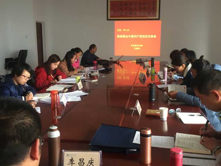 16:00在实训楼605党员活动室,总支书记马丽锋同志以“深刻领会中国共产党的历史使命”为主题讲授党课,总支所属党员参加学习。