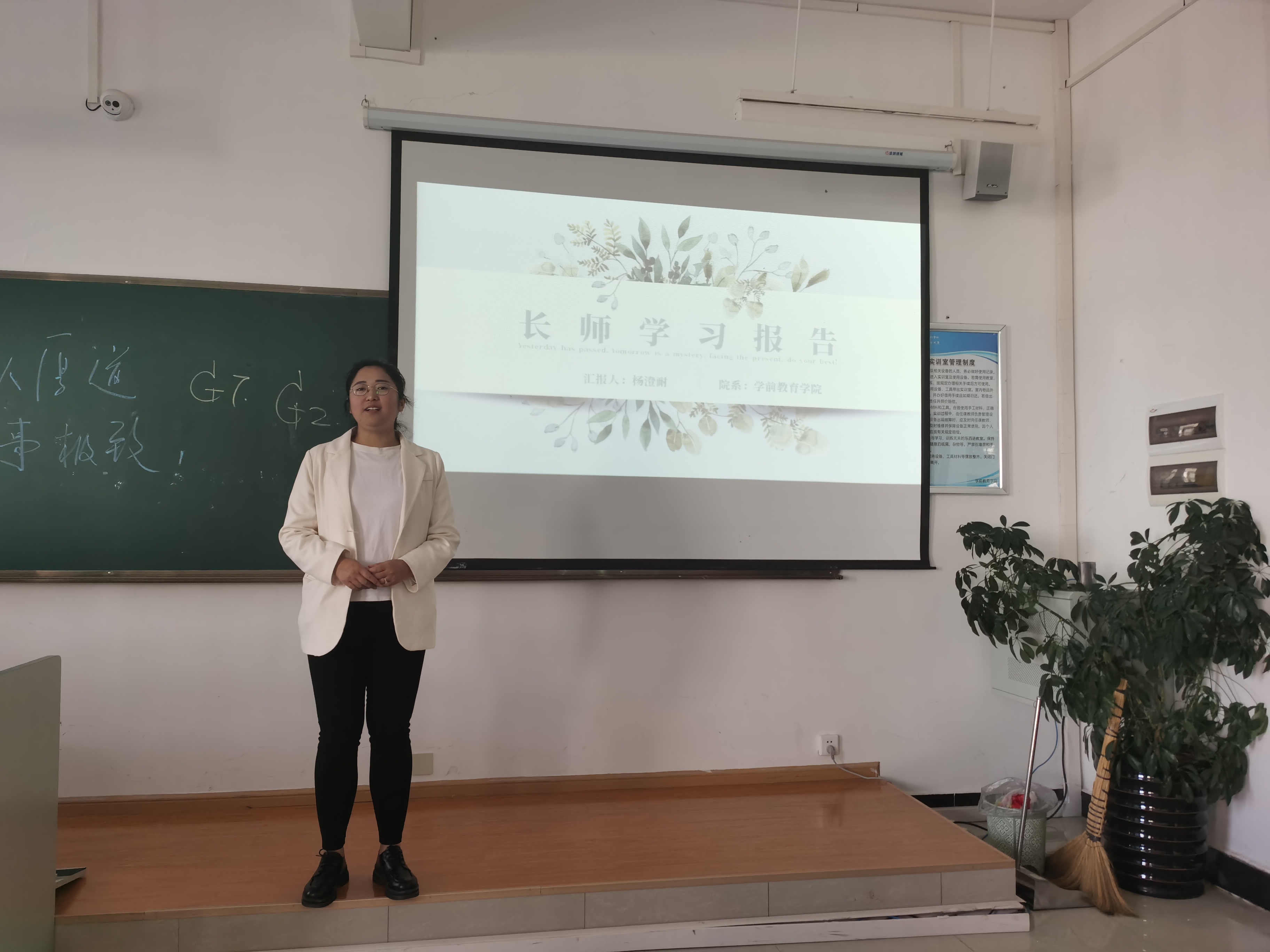 根据《丽江师范高等专科学校2022年受援工作实施方案》要求,结合我院工作实际,学院于2022-2023学年下学期派出学前教育专业教师杨澄耐到长沙师范学院学前教育学院进行业务进修。根据文件要求,进修老师在进修学习结束返校后需在学院范围内组织一次分享报告。经前期认真准备,2023年4月14日下午,杨澄耐老师在求是楼110作了学习报告。
