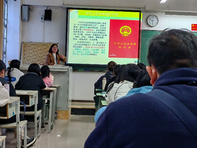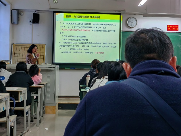 结合课程内容,陈老师语重心长的教育学生:“教育法规与政策除了要学,学了还要用。我们的言行要合法合规,传递正能量。”