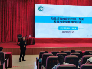 语言是我们交流和交往的工具,幼儿园语言教育的核心价值是要让幼儿通过语言的学习,成为愿交流、会交流,具有交流能力的人。为了更好地提升学前教育专业学生的理论素养,提高语言教育核心经验的理论及实践水平,优化我院学前专业学生语言领域活动设计能力,帮助同学更好地理解掌握幼儿园语言领域活动的设计思路和教学方法。学前教育学院于2021年4月18日下午14∶30在学校图书馆报告厅开展了幼儿语言教育专题讲座,本次讲座参与人员有2019级全体学生。此次讲座有幸邀请到了长沙师范学院张建国老师为同学们讲授,由学前教育学院党总支副书记段传虎同志主持。