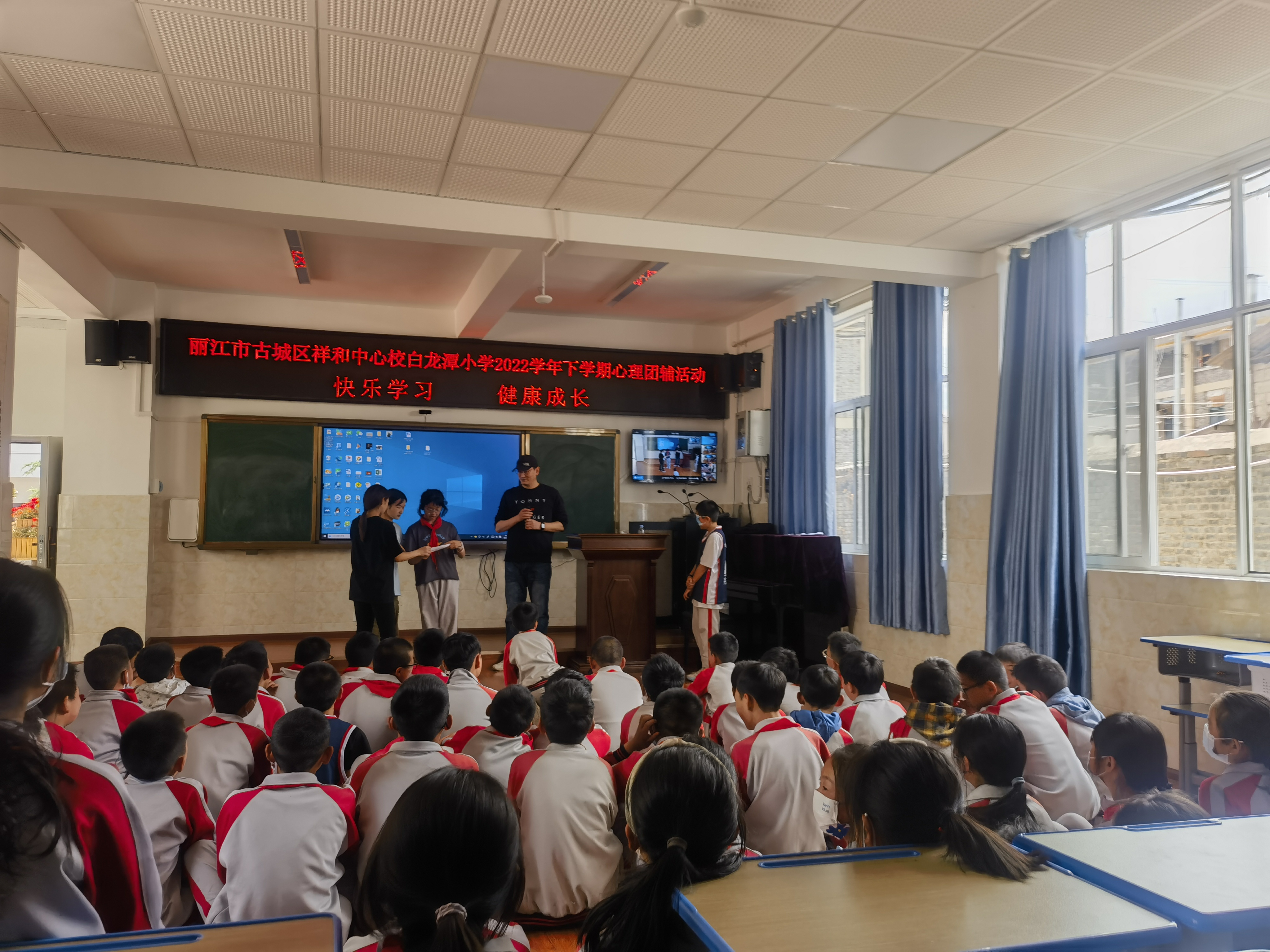 2023年5月9日下午,应白龙潭小学邀请,学前教育学院谢红彬、许世媛、高堂丽三位心理学教师走进白龙潭小学,为该校六年级学生开展团体心理辅导活动。