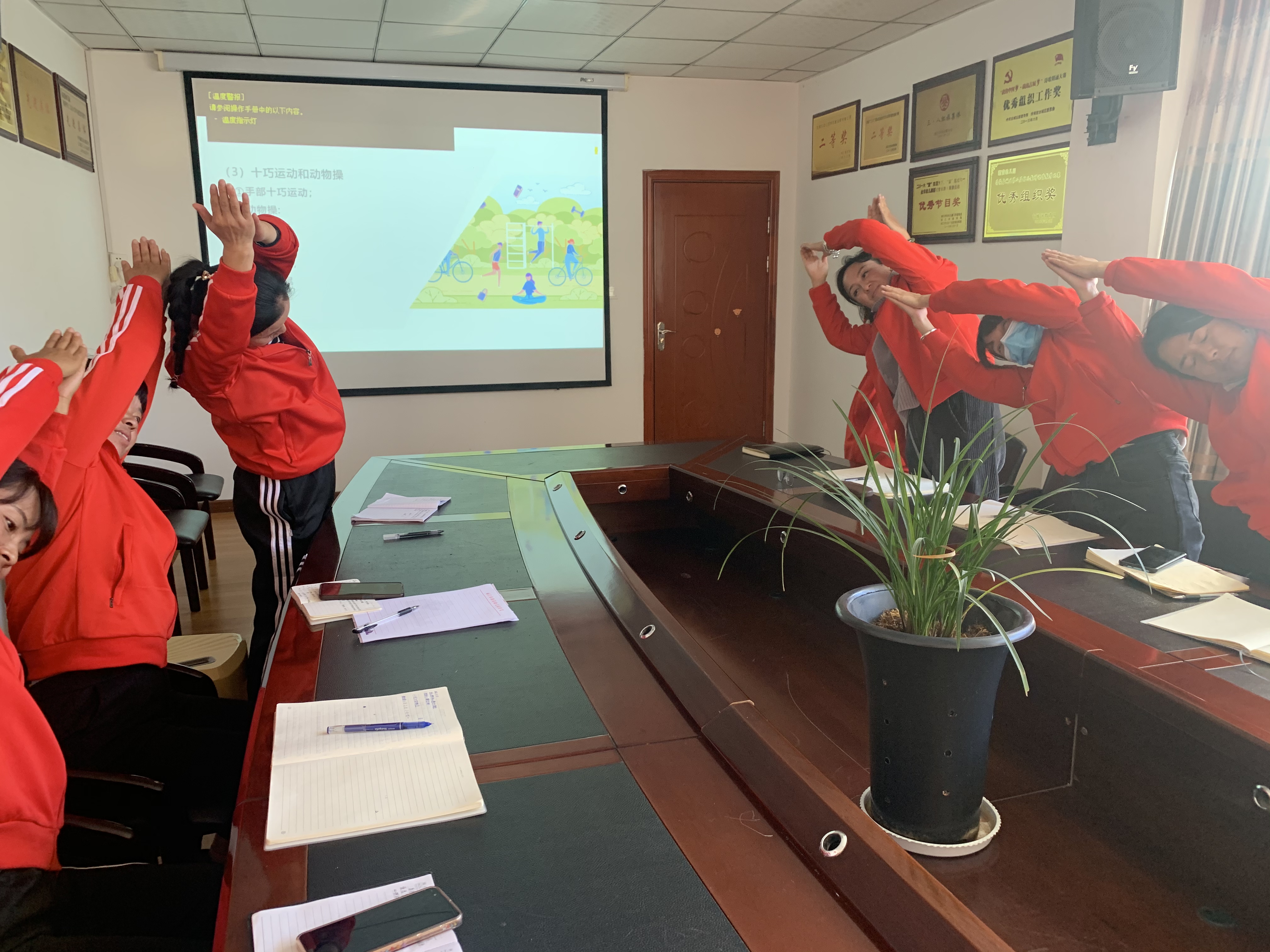 谢红彬老师通过语言讲述加上动作示范,让教师们初步学会了“十巧运动和动物操”等一些简单实用,操作性强的缓解压力小技巧,还有其他一些心理调适的方法和技能,教师们懂得了如何管理自我情绪,对维护自身心理健康和提高心理素质的方法有了一定了解。
