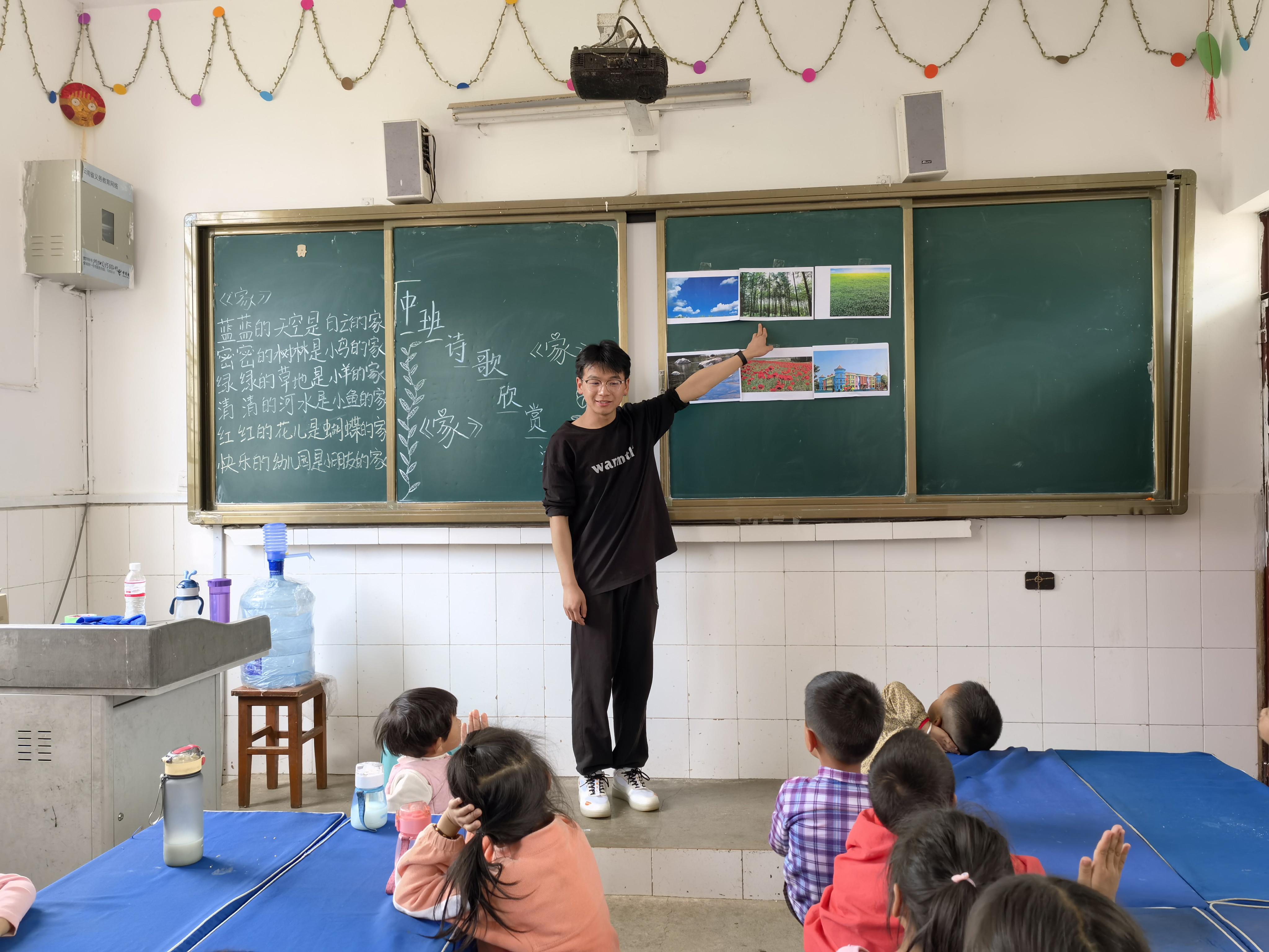 我是学前教育学院2020级学前教育3班武涛同学,为助力乡村振兴,提高光明小学学前教育水平,在自愿报名、学院精挑细选以后,我获得了这次到永胜县光华乡光明小学进行教育帮扶的机会。