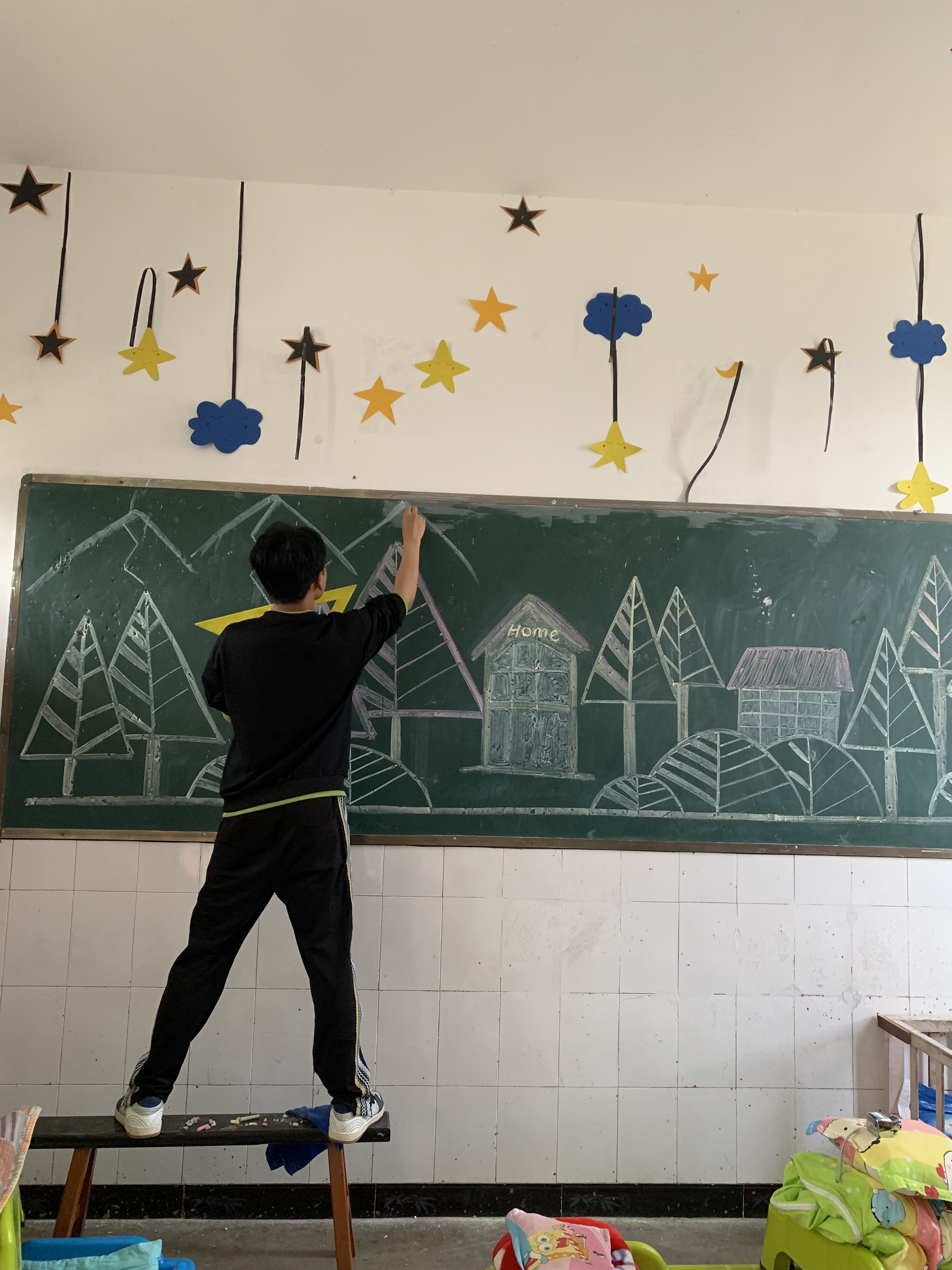 除此之外,我也承担二三四年级的美术课,每个班的人数也都比较少,当每一次讲课时看到孩子们纯真的笑脸,我就觉得我来到这里是值得的,一个多月的时间过的很快,从室内到户外,从晴天到雨天,从午饭到午睡,从早晨入园时一句一句地老师好到下午离园时一句一句地老师再见都已成为了我支教生活的写照。