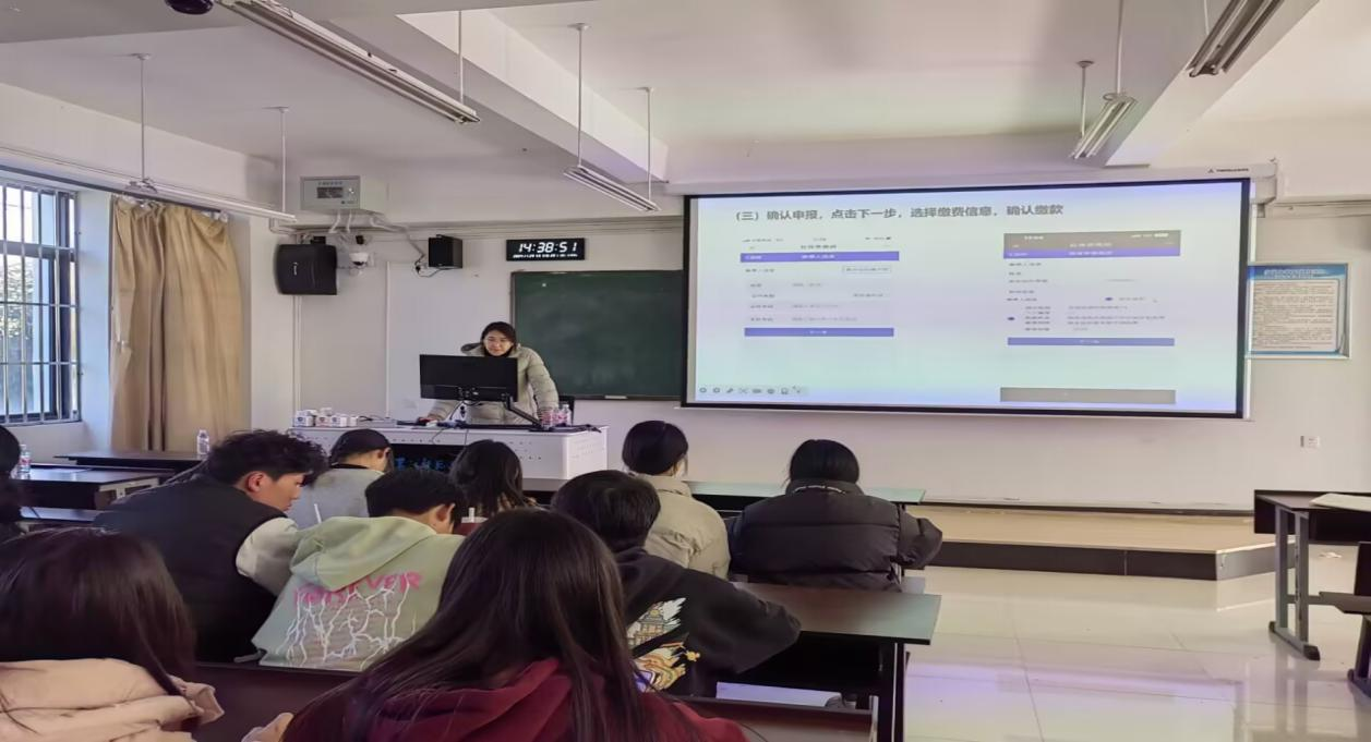 宣讲伊始,古城区医疗保障局专业人员详细说明了各类医保待遇,如门诊报销、住院报销的具体比例与范围,对学生群体尤为关注的在校就医及寒暑假异地就医的政策进行了重点解读。古城税务局专业人员针对医保缴费环节进行了细致讲解,包括缴费时间节点、缴费方式的多样性以及相关税务优惠政策等内容,使同学们对医保缴费的重要性和便捷性有了全新认识。随后工作人员现场指导同学进行参保,解答在参保过程中遇到的实际问题。