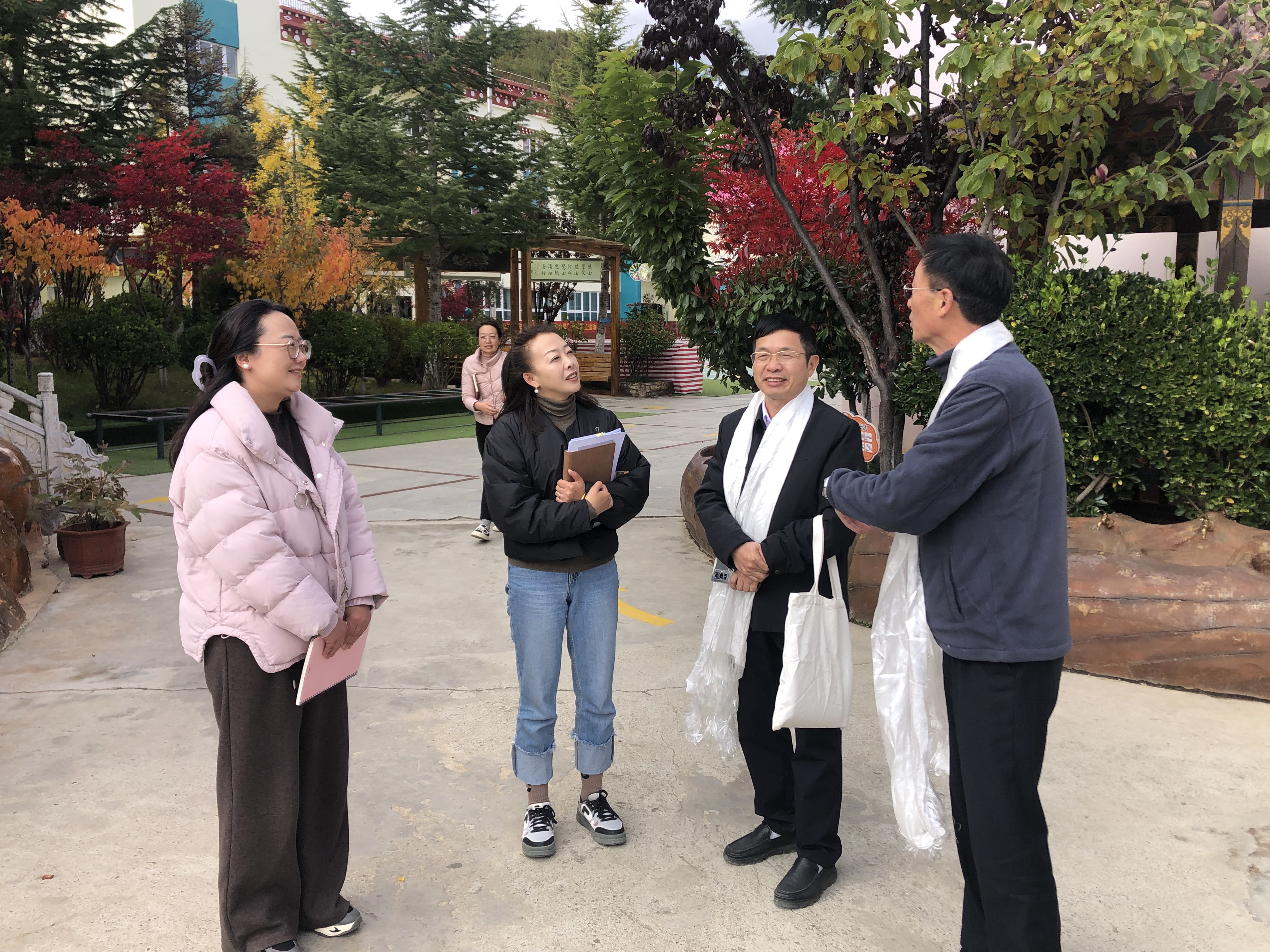为了解2025届毕业生实习情况,加强与校外实习基地幼儿园的沟通联系,10月31日至11月1日,学前教育学院党总支书记吕志刚、长沙师范学院副教授、丽江师范学院校长顾问张建国以及实习指导教师谢红彬一行3人,分别走访了迪庆州幼儿园和香格里拉市幼儿园,深入了解实习生在两家幼儿园的实习及生活情况,并进行了细致入微的实习指导与交流。