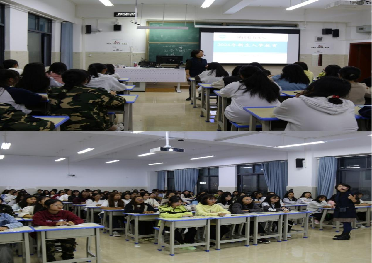 2024年9月5日晚19:00点,学前教育学院2024级新生入学教育在创新楼208准时举行。本次入学教育以学生管理规定的解读为主题,由学院党总支副书记熊娅莉担任授课教师。
