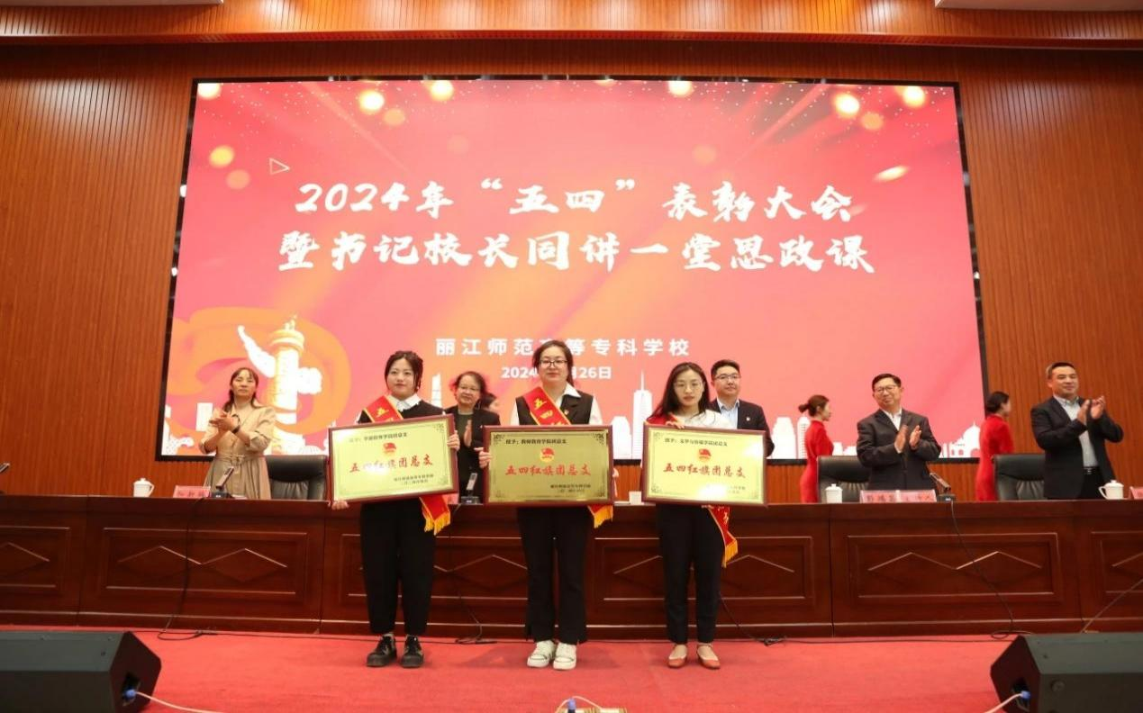 为纪念五四运动105周年并表彰2023年度为学校团学工作作出贡献的个人和集体,2024年4月26日,丽江师范高等专科学校在图书馆报告厅举行2024年“五四”表彰大会暨书记校长同讲一堂思政课活动。