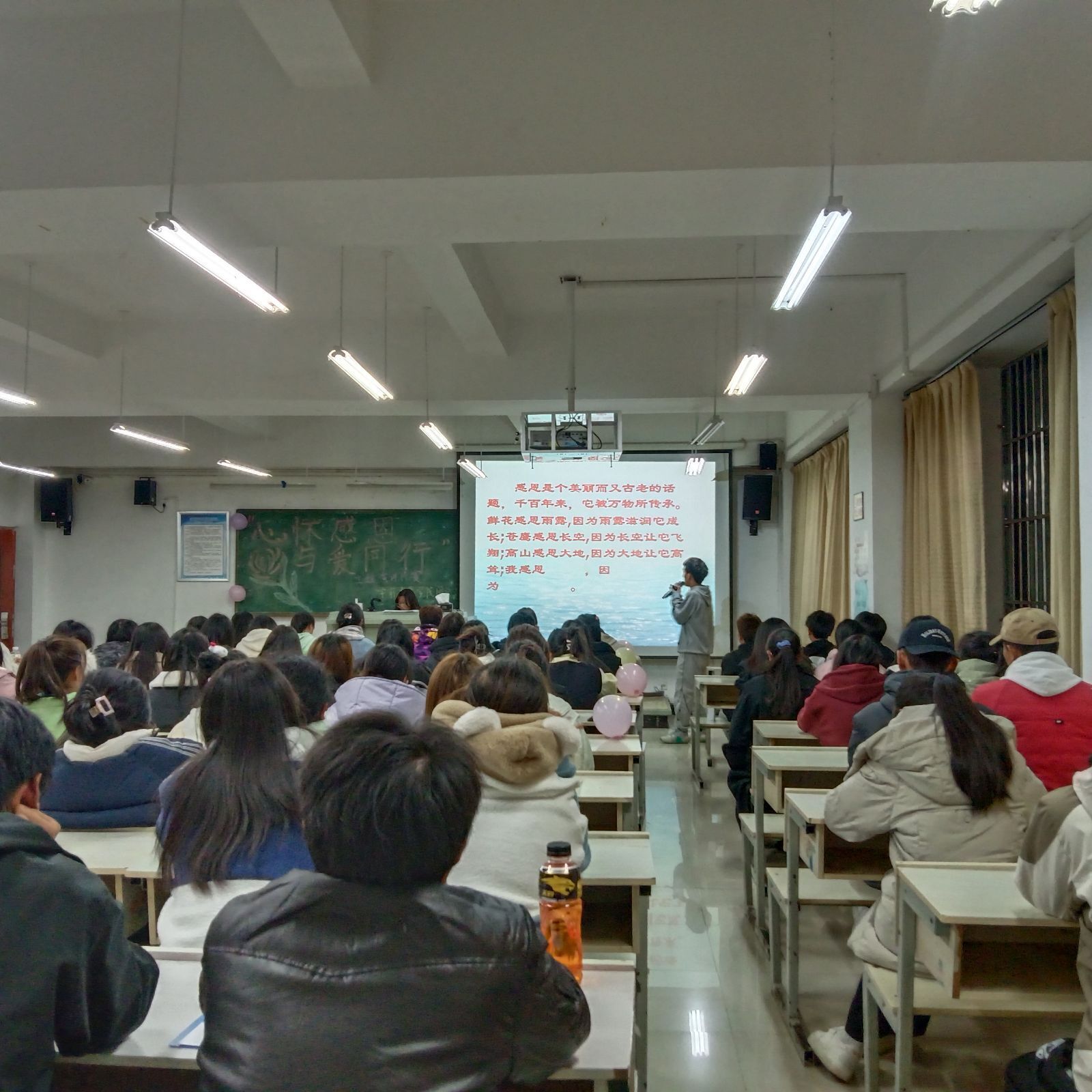 为大力弘扬中华民族优秀传统,培养学生的社会主义核心价值观,塑造学生知恩、感恩、报恩的精神品格,2023年12月3日晚上19:00-21:00,学前教育学院团总支在博学楼228举办了以“心怀感恩,与爱同行”为主题的演讲比赛。