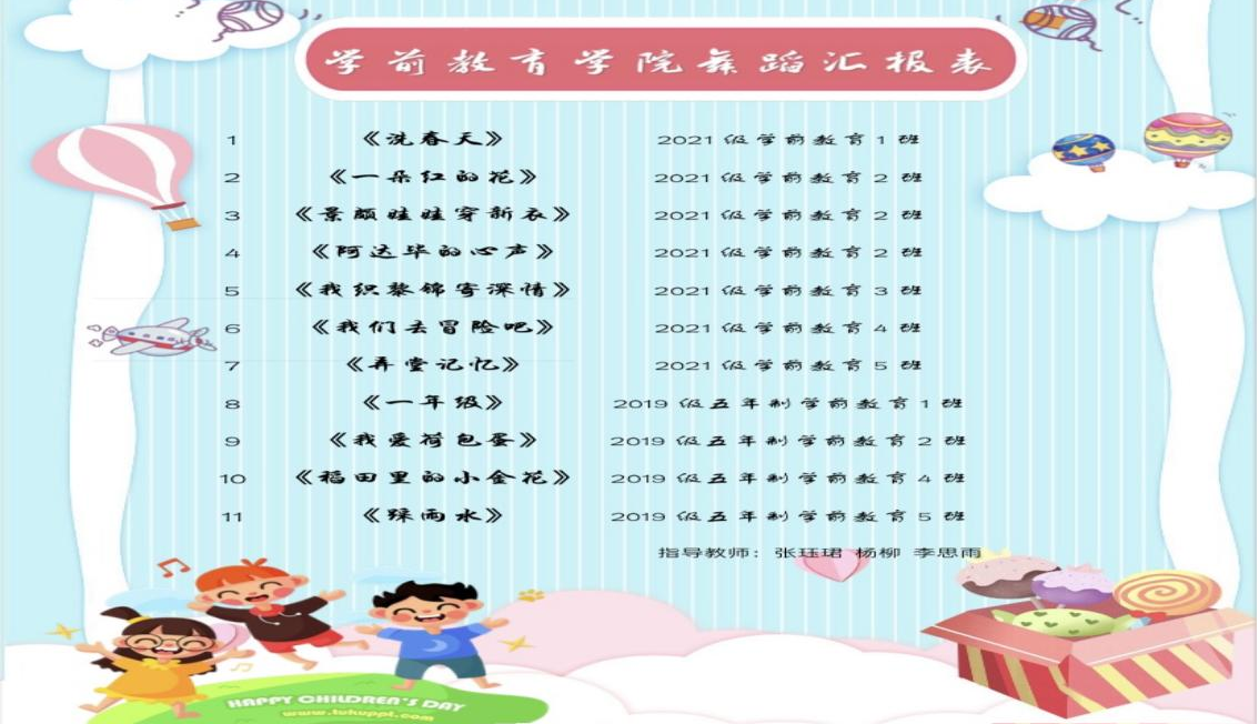 2023年6月30日下午13:00,学前教育学院艺术教育教研室在求是楼大厅举办“学前教育专业《幼儿舞蹈创编》课程汇报展演活动”。
