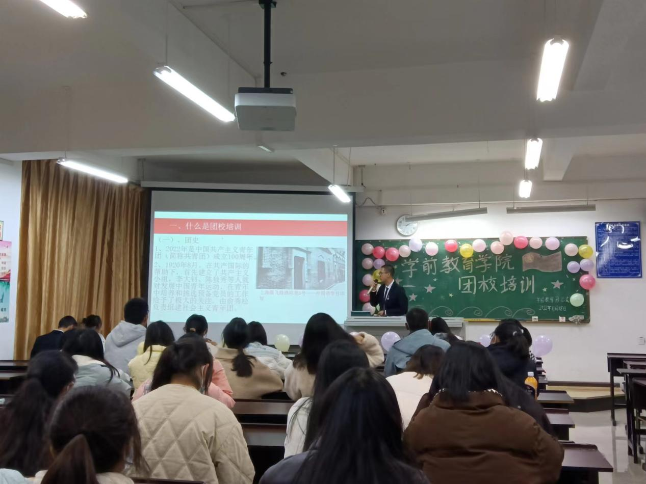 共青团员是先进青年的代表,是有理想,敢于创造,积极向上,努力为梦想而拼搏的一代。当代大学生团员干部,正是这批优秀共青团员的带头者。为了创建一支积极进取,团结友爱,互助进步,组织战斗力强,凝聚力强的队伍,2022年11月18日19:00学前教育学院团总支在教学楼210举办了“团校培训”活动。