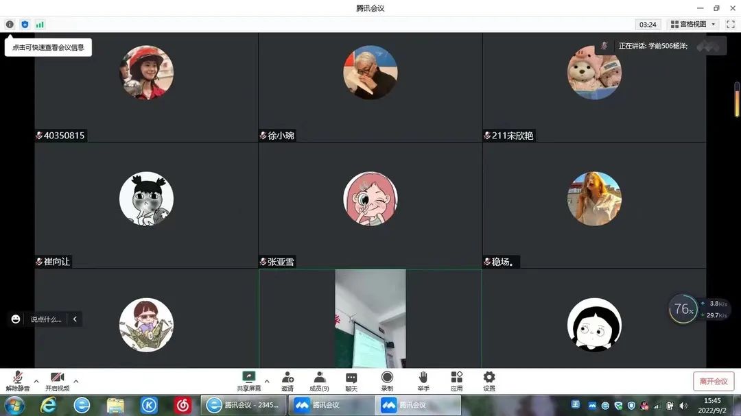 “她们人虽然还没到,但已经是我们班级的成员了。我们会尽最大的努力不让丽师的同学们落下一堂课!”19学前506班班长李思怡在得知丽专交流生们不能按时到校后,马上带领班干部组成了“直播团队”,及时将每位老师的声音、板书、课件传递给八位交流生。团队起初尝试使用QQ群直播,连线时发现视频画面质量不高、声音严重卡顿,李思怡马上提议更换直播平台和手机,转为使用腾讯会议直播。虽然画面清晰度提高了,但手机直播还是受到了网络影响,不断出现画面与声音延迟的问题。经过几次设备调试,她们最终在老师的指导和建议下,开始使用笔记本电脑进行画面共享,并尝试用电脑上自带的摄像头做转播工具,这一次则最大可能地做到了音画同步传送。
