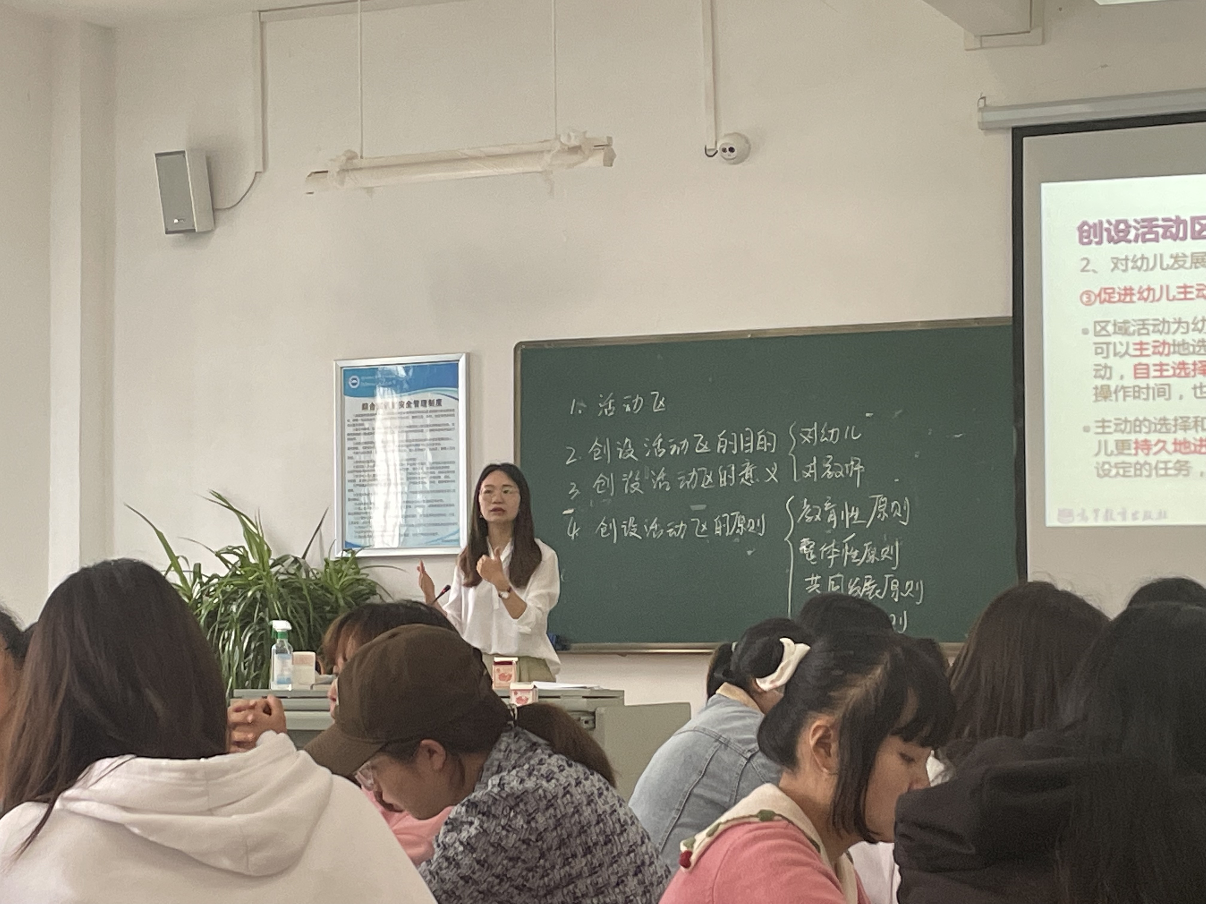 上课前,我院青年教师伍艳在指导教师的指导下认真选题、积极备课、精心准备上课内容。课上,伍艳老师教态亲切,教学规范,用丰富充实的教学内容、新颖创意的教学方法,引导同学和观摩教师学习了《幼儿园环境创设》的重要知识和技能,充分展现了课程的魅力与重要性,同时,也展现了教师的教学风采与教学能力。