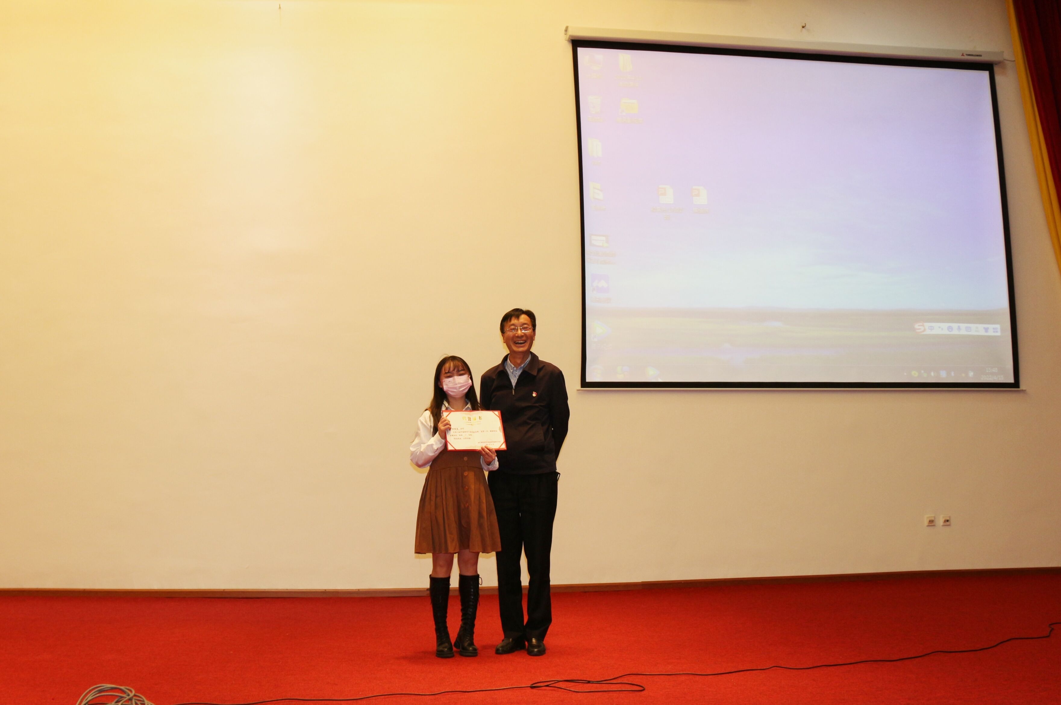 首先,我院党总支书记吕志刚、院长皮婧、副院长张莉,为2021年在学前教育学院专业技能竞赛复赛中获奖的8位同学进行颁奖。获得复赛一等奖的是2020级学前教育3班胡继春同学,获得复赛二等奖的是2020级学前教育1班尹一安同学、2020级学前教育5班马毅涵同学、2020级学前教育2班 李艳颖同学,获得复赛三等奖的是2020级学前教育6班周春丽同学、2018级学前教育五年制2班杨甜同学、2018级学前教育五年制1班杨夏梅同学、2020级学前教育4班郑明艳同学。