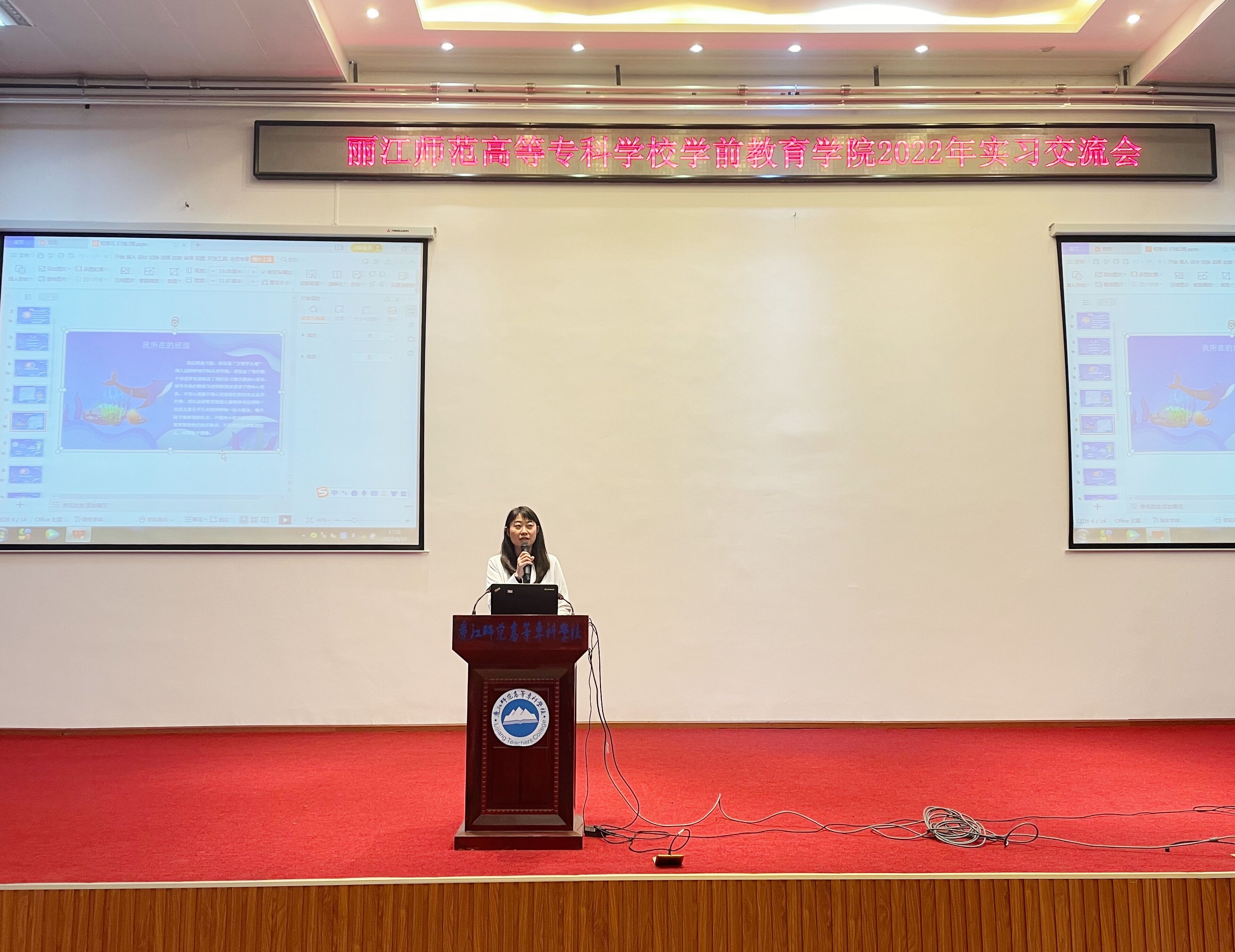 2022年4月15日下午,学前教育学院实习交流分享会在图书馆报告厅举行,学前教育学院全体教师及2018级五年制学前教育1、2班、2020级学前教育1-6班全体同学参加会议。本次交流分享活动共两个目的:第一,帮助2022届毕业生全面总结实习、实践经验,提升专业素养;第二,帮助即将走上实习岗位的同学做好实习前的心理准备和专业储备,汲取师兄师姐的实习经验。