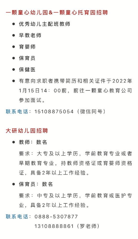 一、一颗童心、大研幼儿园幼儿园招聘信息