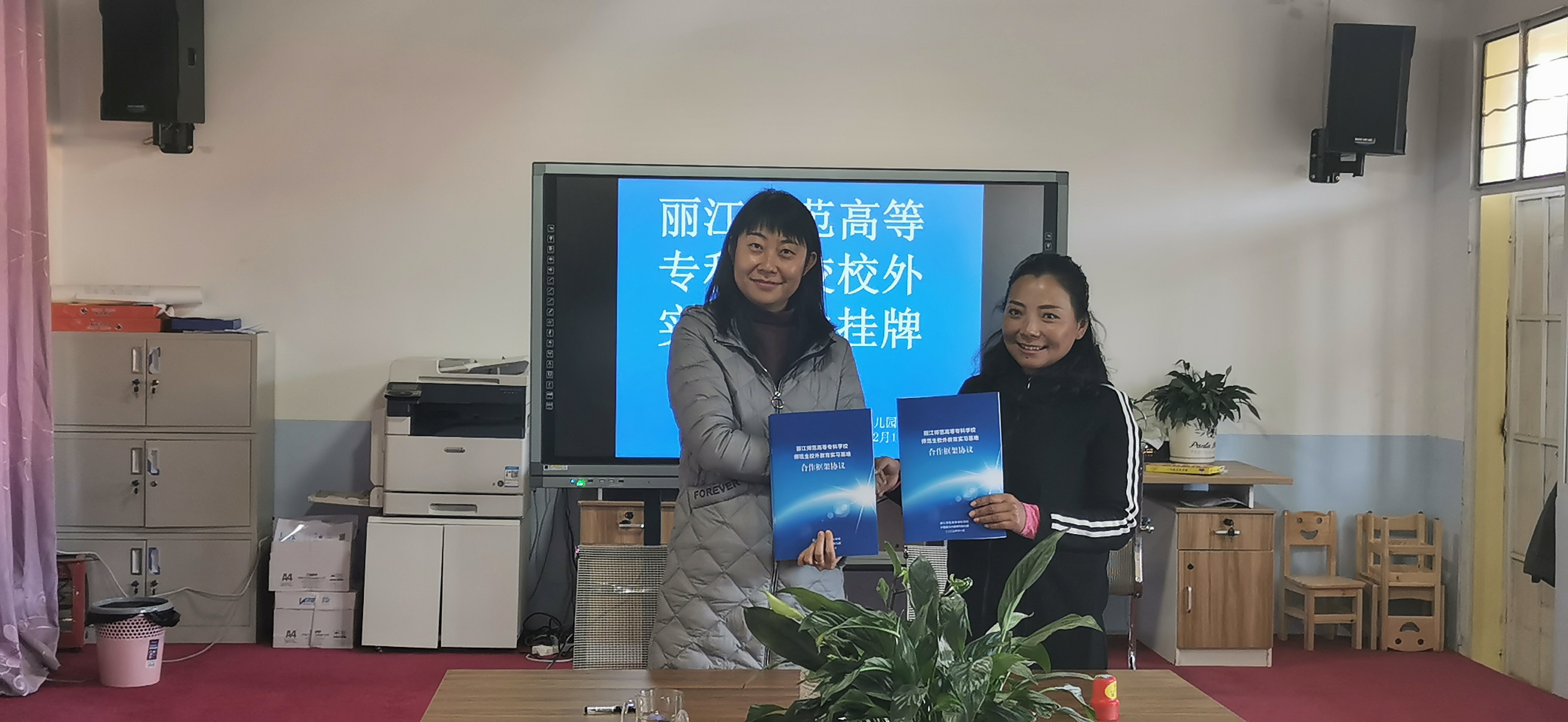 其次,在参观了解宁蒗城关第二幼儿园及安乐幼儿园之后,举行了签约仪式。签约仪式上,院方与园方就办园特色、办园理念、幼儿教师培养等方面做了深入的交流与探讨,进一步明确了双方的合作意向及内容,旨在共同培养合格、优秀幼儿园教师。