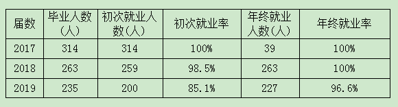 近3年,学前教育专业就业率均在95%以上。具体数据如下表: