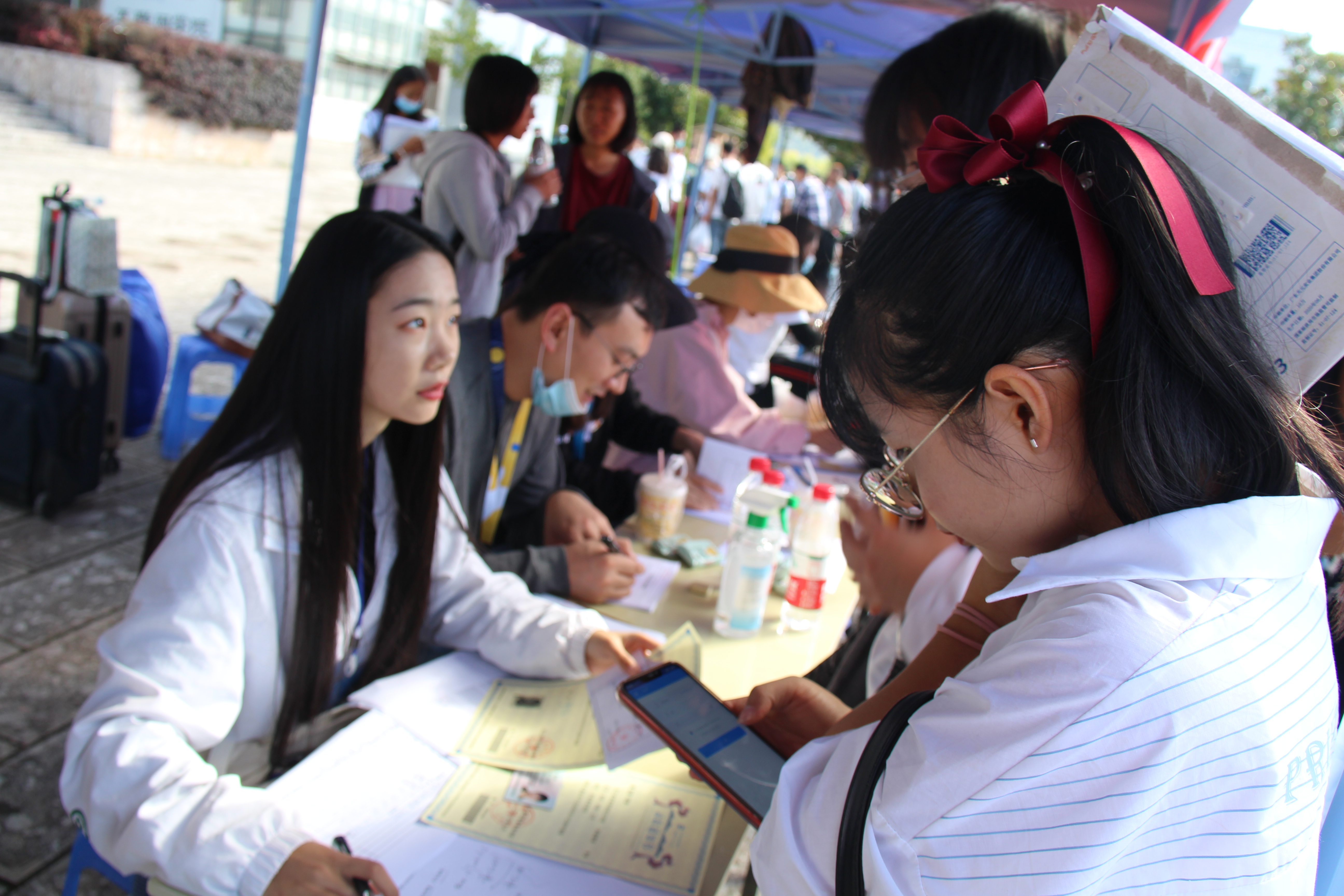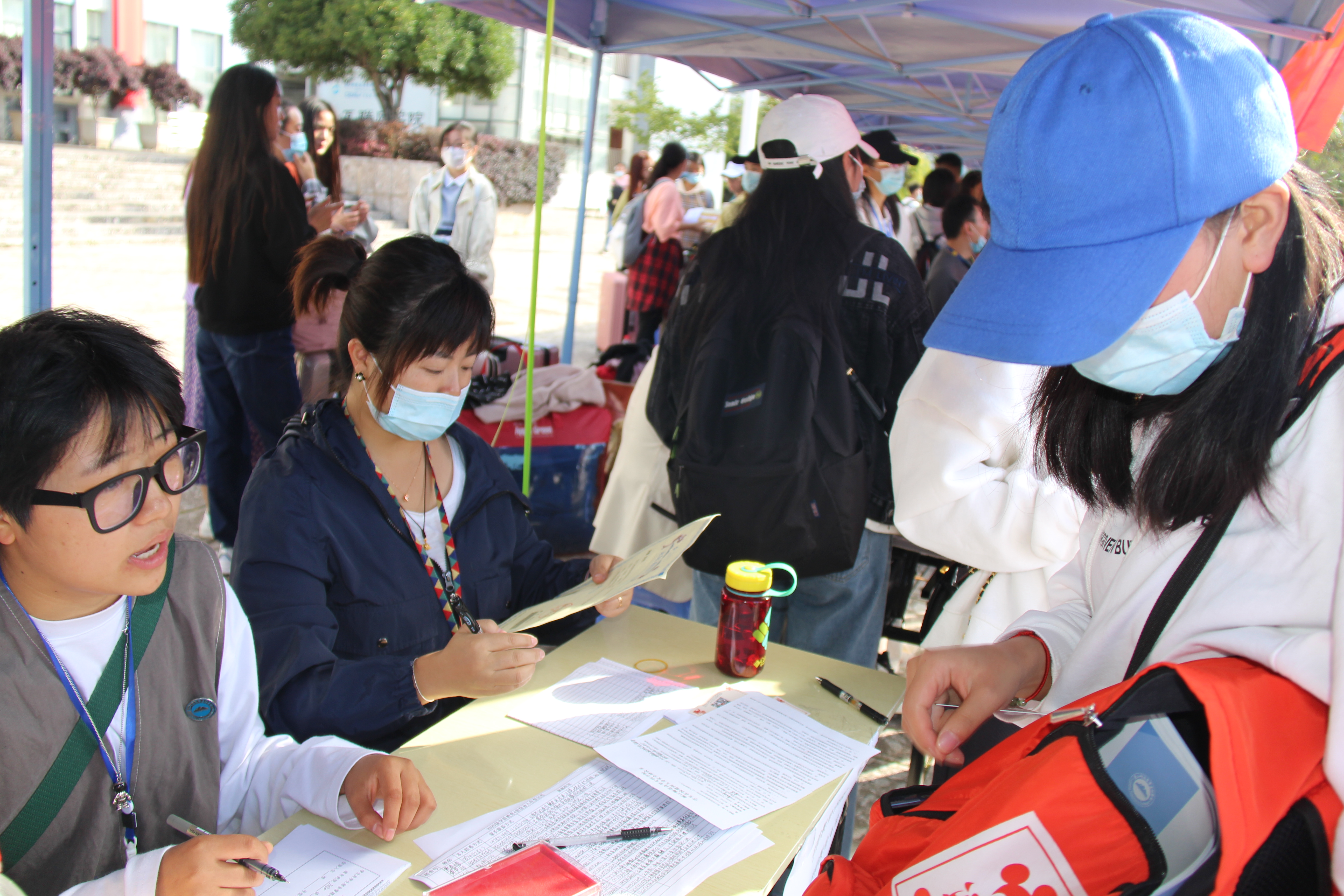 学院教师校内外接应,部分老师早早就到丽江火车站、客运站等候着我们的新生。新生入校以后,学院学生会以及志愿者们热情地引导新生办理入学、入住手续,学院内新生班主任都在办理入学手续这一环节跟新生有一个很温暖的初次见面。