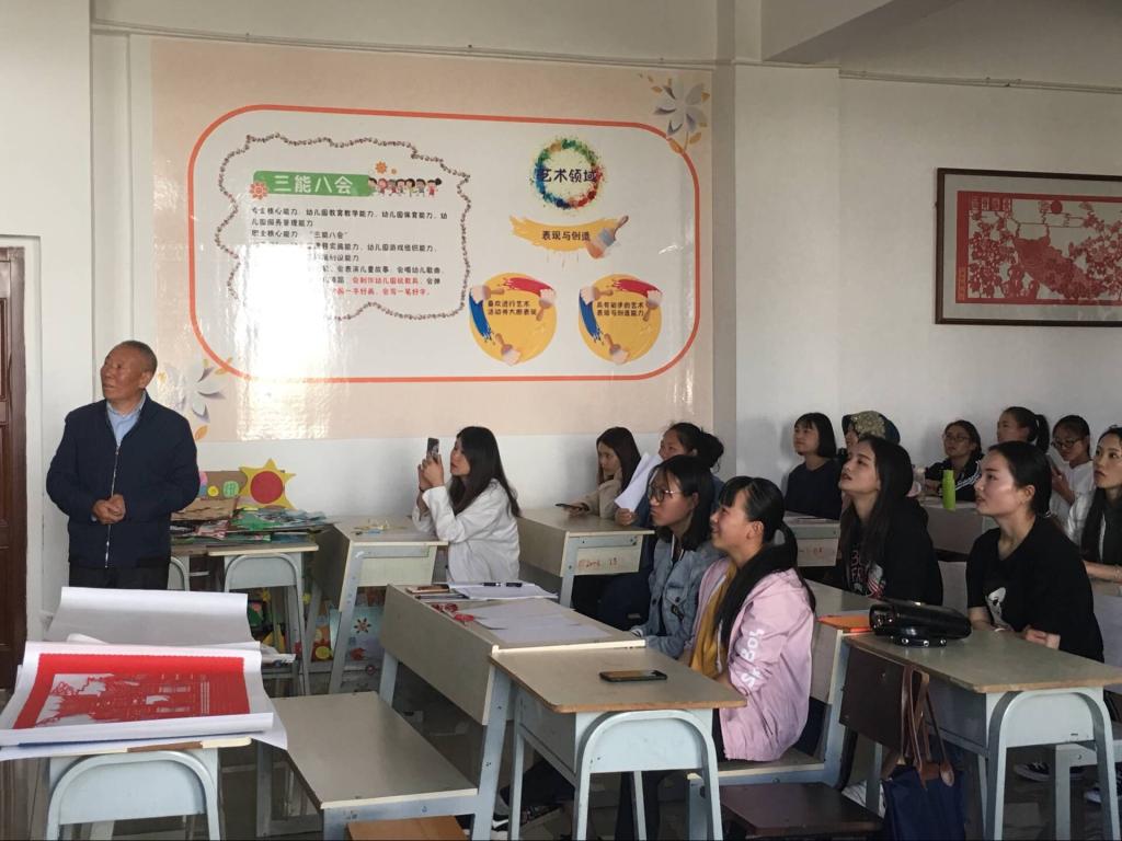 严老师是我校退休教师,在剪纸艺术上造诣颇深,其剪纸作品深受行家好评,被评为永胜县2017年第二批县级非物质文化遗产剪纸传承人。剪纸和缝纫是学前教育专业学生成为合格幼儿教师的必备技能,让严老师这样的大师讲授课程,学生不仅能提高脑、眼、手的协调能力,更能激发学习兴趣,在领略我国传统文化过程中培养爱国热情和艺术审美能力。