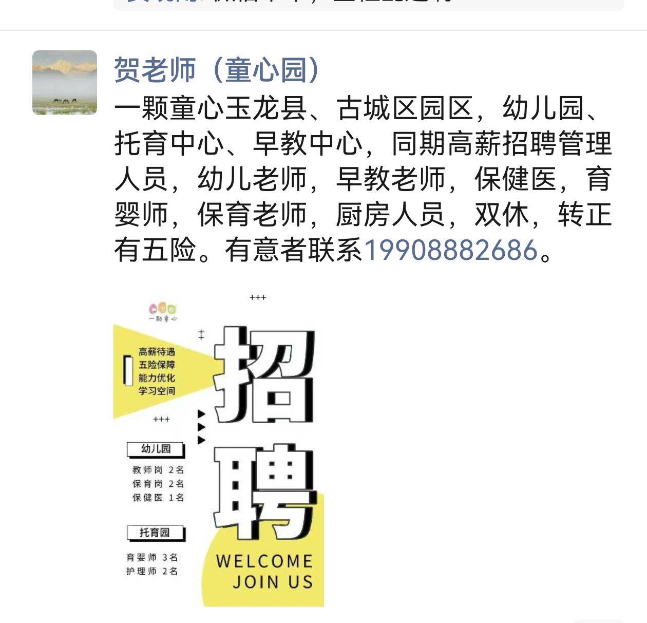 招聘信息|丽江市一颗童心教育集团