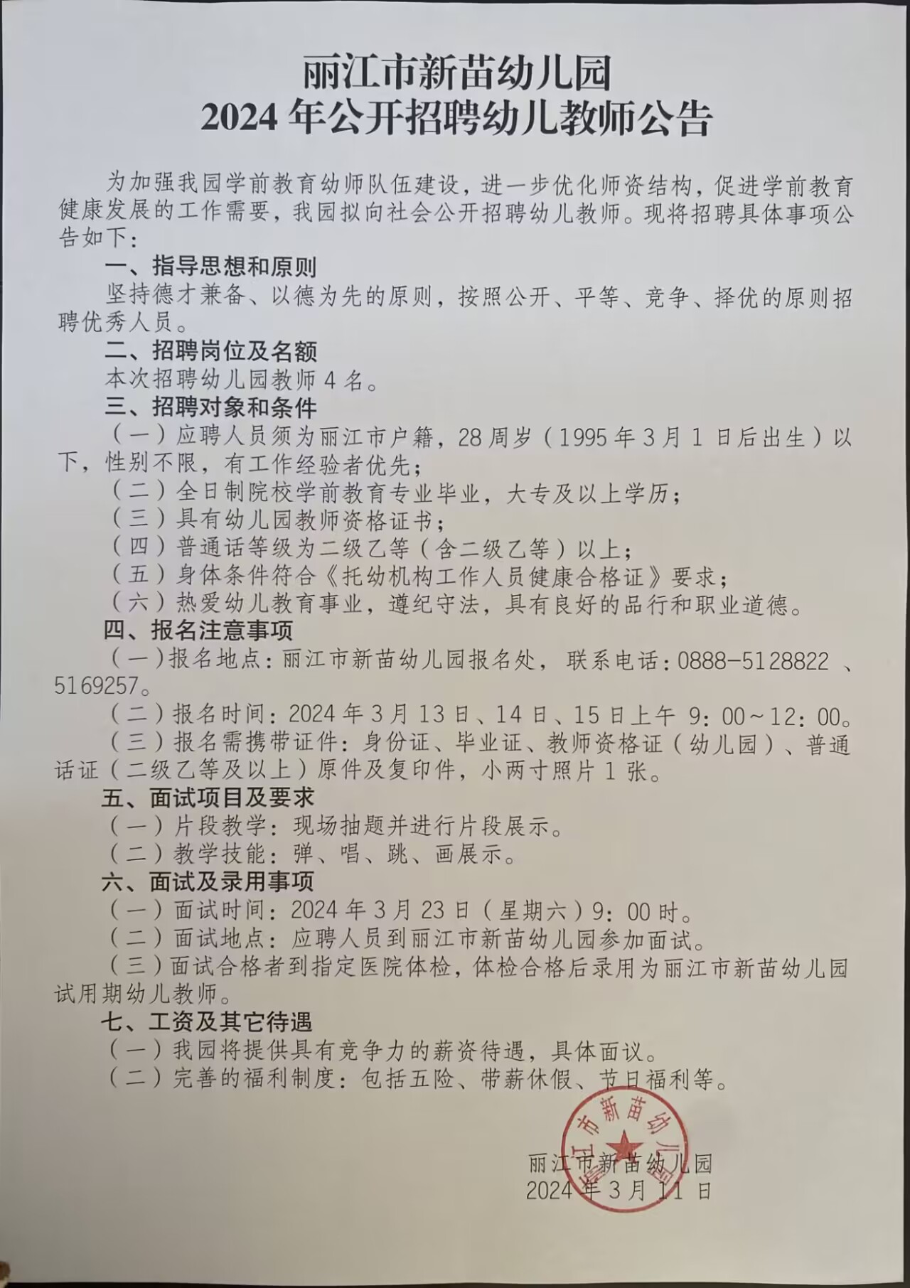 招聘信息|丽江市新苗幼儿园